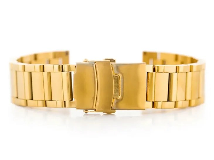 Stalowa bransoletka do zegarka wysokiej jakości w kolorze złotym - powlekana metodą PVD.