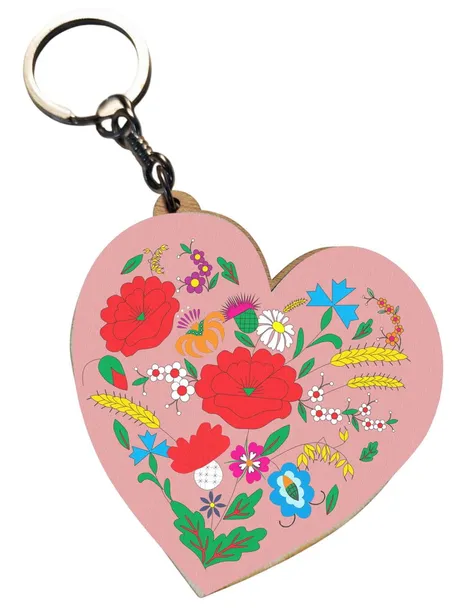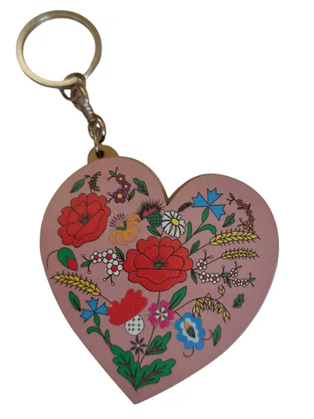 Podkreśl swoje uczucia w unikalnym, folkowym stylu! Drewniany brelok w kształcie serca z tradycyjnym wzorem kociewskim to idealny dodatek dla miłośników rękodzieła i polskiego folkloru.