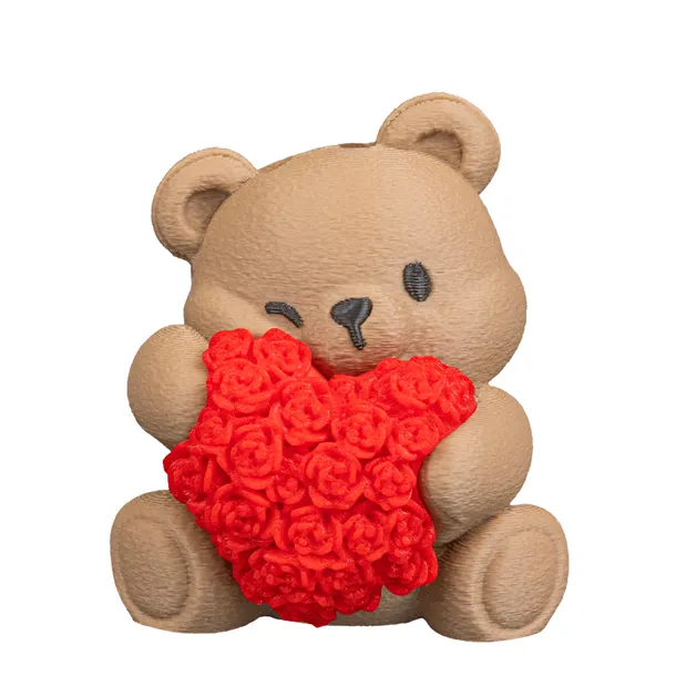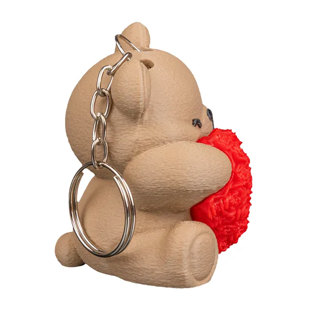 Uroczy brelok w kształcie misia trzymającego różane serduszko to idealny dodatek do kluczy, plecaka czy torby. Lekki, przyjemny w dotyku i wykonany z bezpiecznego materiału PLA.