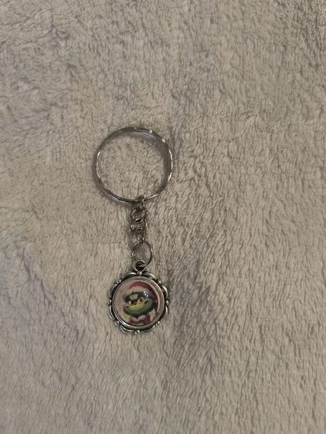 Sprzedam śliczny breloczek z zawieszką w kształcie koła z ozdobnym brzegiem.