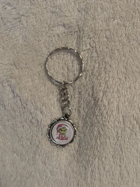Sprzedam śliczny breloczek z zawieszką w kształcie koła z ozdobnym brzegiem.
