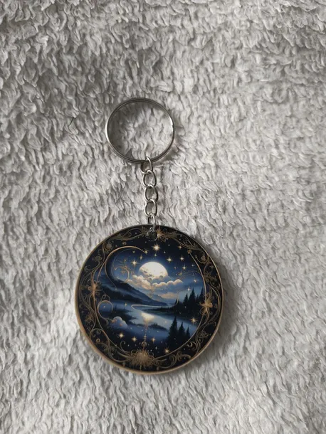 Sprzedam śliczny breloczek z zawieszką z wizerunkiem kosmosu i planet.