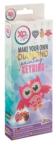 W zestawie znajduje się także długopis do nakładania diamentów, specjalna zawieszka oraz miseczka, która ułatwi nabieranie świecących kamyczków do udekorowania obrazu. Brelok diamentowy to świetna zabawa, która pozwoli dziecku kształtować cierpliwość, precyzję oraz wspierać koordynację wzrokowo-ruchową.