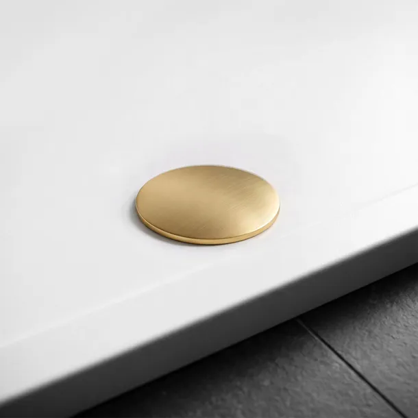 - Eleganckie wykończenie - Wykończenie korka odpływowego w kolorze złoto szczotkowane dodaje estetyki i elegancji, podkreślając nowoczesny charakter brodzika.