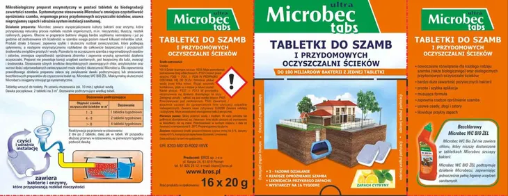 **BROS MICROBEC ULTRA TABLETKA DO SZAMB I OCZYSZCZALNI** Microbec Ultra Tabletki to mikrobiologiczny preparat enzymatyczny w postaci tabletek, dedykowany do biodegradacji zawartości szamba i wspomagania pracy przydomowych oczyszczalni ścieków. Regularne stosowanie Microbecu zmniejsza częstotliwość opróżniania szamba, usuwa nieprzyjemne zapachy oraz udrażnia systemy instalacji sanitarnej. Tabletki mają dwufunkcyjne działanie – niebieska część udrażnia i czyści, natomiast biała zawiera bakterie i enzymy. Główne Cechy: ✅ Trójfazowe Działanie: Tabletki zapewniają szybki i skuteczny rozkład zanieczyszczeń, upłynnienie zredukowanych związków organicznych do związków prostych oraz sumaryczne zmniejszenie ilości osadów. ✅ Redukcja Częstotliwości Opróżniania Szamba: Regularne stosowanie preparatu zmniejsza częstotliwość opróżniania zbiorników, co prowadzi do oszczędności i większej wygody. ✅ Eliminacja Przykrych Zapachów: Skutecznie usuwa nieprzyjemne zapachy, poprawiając komfort użytkowania szamb i oczyszczalni. ✅ Wysoka Zawartość Bakterii: Każda tabletka zawiera 100 miliardów pożytecznych bakterii, co zapewnia efektywne i szybkie działanie. ✅ Łatwa i Szybka Aplikacja: Musująca formuła tabletek sprawia, że ich użycie jest proste i szybkie, a zapach cytrynowy dodatkowo maskuje nieprzyjemne zapachy. Sposób Użycia: ➡️ Krok 1: Wrzucić tabletkę do toalety. ➡️ Krok 2: Po ustaniu musowania (ok. 10 minut) spłukać wodą. ➡️ Dawka Początkowa: 2 tabletki na 3 m³. ➡️ Dozowanie Podtrzymujące: - Na każde 1-3 m³: 1 tabletka tygodniowo. - Na każde 4-8 m³: 2 tabletki tygodniowo. - Powyżej 8 m³: 3 tabletki tygodniowo. Dla Kogo Jest Ten Produkt: Microbec Ultra Tabletki są idealnym rozwiązaniem dla: - Właścicieli Domów z Szambem: Osoby, które chcą zmniejszyć częstotliwość opróżniania zbiorników i poprawić efektywność działania swoich szamb. - Użytkowników Przydomowych Oczyszczalni Ścieków: Osoby, które chcą wspomóc pracę swoich oczyszczalni i zapewnić ich skuteczne działanie. - Osób dbających o Środowisko: Użytkownicy szukający ekologicznych rozwiązań do zarządzania ściekami, które minimalizują negatywny wpływ na środowisko. Parametry Produktu: ☑️ Musująca Formuła: Ułatwia równomierne rozprowadzenie aktywnych składników. ☑️ Dwufunkcyjne Działanie: Niebieska część udrażnia i czyści, biała zawiera bakterie i enzymy. ☑️ Wysoka Zawartość Bakterii: 100 miliardów bakterii w jednej tabletce. ☑️ Zapach Cytrynowy: Maskuje nieprzyjemne zapachy. Opakowanie Zawiera: - Cena dotyczy 1 sztuki. W opakowaniu zbiorczym znajduje się 16 sztuk tabletek. Microbec Ultra Tabletki to niezawodne i łatwe w użyciu rozwiązanie do skutecznego zarządzania szambem i przydomowymi oczyszczalniami ścieków. Dzięki innowacyjnej formule, wysokiej zawartości bakterii oraz prostocie użycia, jest to idealny produkt dla każdego, kto chce utrzymać swoje systemy sanitarno-kanalizacyjne w optymalnym stanie.