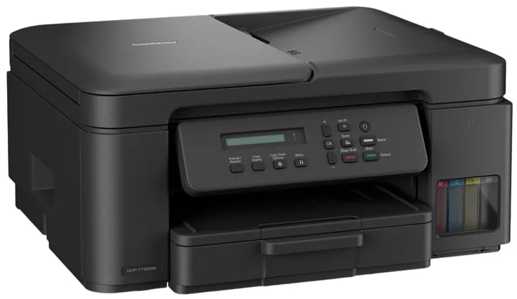 Brother DCP-T735DW to wielofunkcyjna, kompaktowa drukarka atramentowa zaprojektowana z myślą o potrzebach nowoczesnych biur i użytkowników domowych. Oferując funkcje drukowania, skanowania i kopiowania, urządzenie zapewnia niezawodną wydajność i wysoką jakość wydruków przy jednoczesnym oszczędzaniu miejsca - idealnie pasuje do każdego biurka dzięki niewielkim wymiarom. Model DCP-T735DW został wyposażony w podajnik papieru o pojemności do 150 arkuszy, automatyczny druk dwustronny oraz zaawansowany system napełniania atramentu z przodu urządzenia. Dzięki technologii bezrozlewowej, uzupełnianie tuszu jest szybkie i czyste, a kontrola poziomu atramentu - intuicyjna. Wbudowany moduł Wi-Fi umożliwia wygodne drukowanie z dowolnego miejsca, bez potrzeby stosowania kabli. Co więcej, automatyczny podajnik dokumentów (ADF) pozwala na szybkie skanowanie i kopiowanie wielostronicowych dokumentów, zwiększając wydajność pracy.