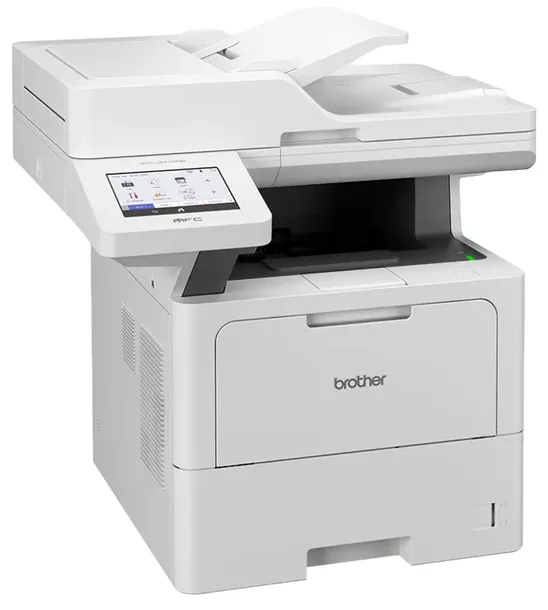 Urządzenie MFC-L6710DW oferuje intuicyjną obsługę i wysoką wydajność. Jest wyposażone w duży i łatwy w nawigacji wyświetlacz dotykowy o przekątnej 12,7 cm. Model umożliwia łatwą archiwizację i zarządzenie dokumentami, w tym przekierowywanie faksów do poczty e-mail i usług chmurowych. Urządzenie ma standardowy podajnik papieru o pojemności 520 arkuszy oraz automatyczny podajnik dokumentów o pojemności 70 arkuszy. Model można uzupełnić o opcjonalne podajniki papieru o łącznej pojemności 1560 arkuszy.
