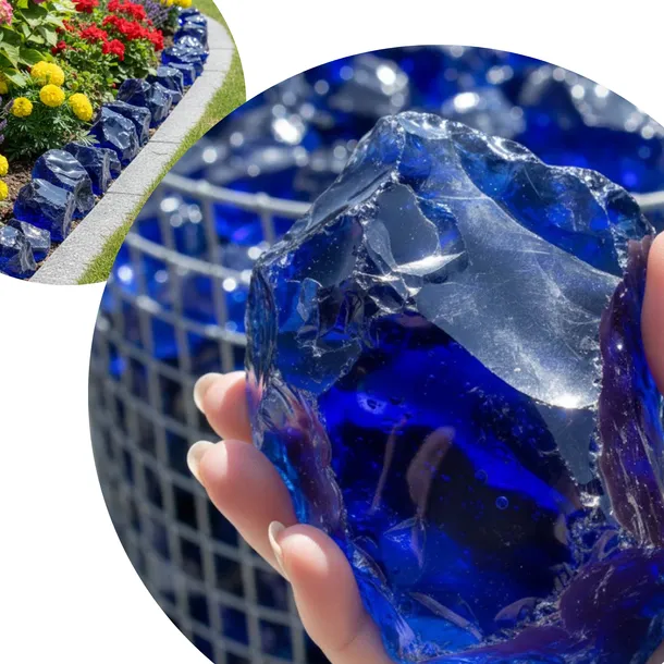 BRYŁY SZKLANE KAMIEŃ NIEBIESKI SZKŁO DO GABIONÓW DO OGRODU 20kg 10-20cm