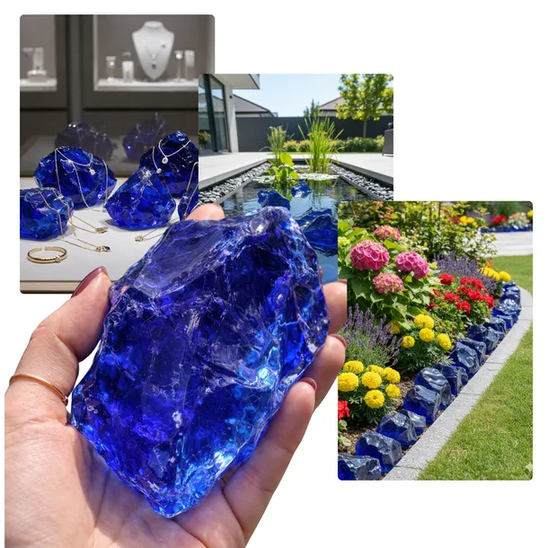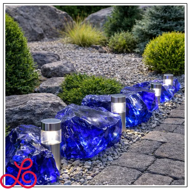 ✅Nowoczesny Detal na Skalniakach Wplecenie szkła w tradycyjne kompozycje z głazów narzutowych czy łupków tworzy intrygujący, awangardowy kontrast między surowością kamienia a gładkością i barwą szkła.