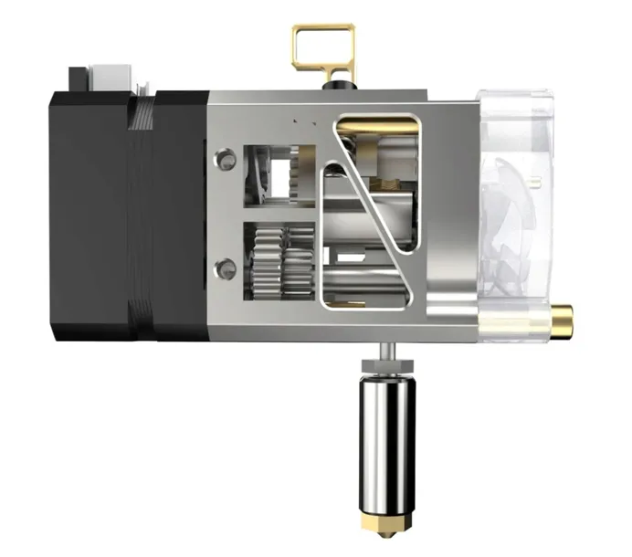 Dzięki przełożeniu 7:1 i sile wytłaczania maks. 7,5 kg na kołach zębatych możliwe jest niezwykle płynne podawanie filamentu. Również nacisk wywierany przez koła zębate na filament można dostosować do własnych upodobań, aby uzyskać większą elastyczność.