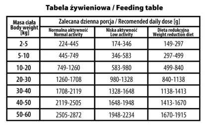 - Lekkostrawna i niskokaloryczna - pomaga utrzymać prawidłową masę ciała, wspierając zdrowie i witalność psa