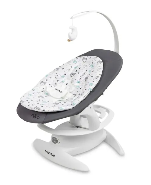 Noco łączy funkcjonalność z nowoczesnym, eleganckim designem. Wyposażony w pałąk z regulowaną wysokością i zabawkę sensoryczną, angażuje i rozwija zmysły dziecka. Miękka wkładka do leżaczka została zaprojektowana z myślą o maksymalnej wygodzie, a jej atrakcyjny wygląd przyciąga wzrok. Zdalne sterowanie ułatwia dołączony do zestawu pilot.