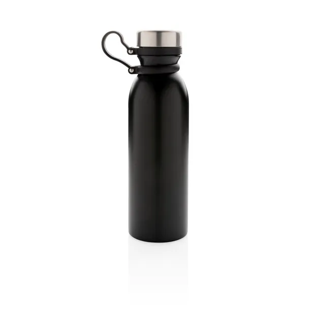 Butelka termiczna 600 ml z silikonowym uchwytem, miedziana izolacja próżniowa, podwójne ścianki z próżnią między ściankami, nie wymaga obsługi oburącz, szczelna zakrętka, specjalna konstrukcja zapobiega kondensacji na zewnątrz butelki, utrzymuje temperaturę ciepłych napojów do 8 godzin oraz zimnych do 24 godzin, klasa termiczna: A
