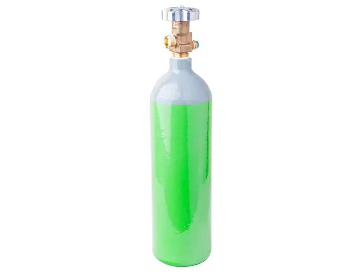 Butla CO2 2l w kolorze zielono-szarym lub szarym.