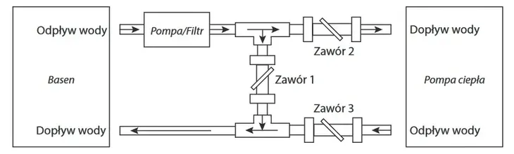 Zestaw ten jest instalowany pomiędzy filtrem basenu, pompą ciepła a basenem. Jeśli instalacja basenowa jest wyposażona w system uzdatniania, który dozuje produkty do wody w basenie, np. chlor lub sól, obejście to jest umieszczane przed tą instalacją.