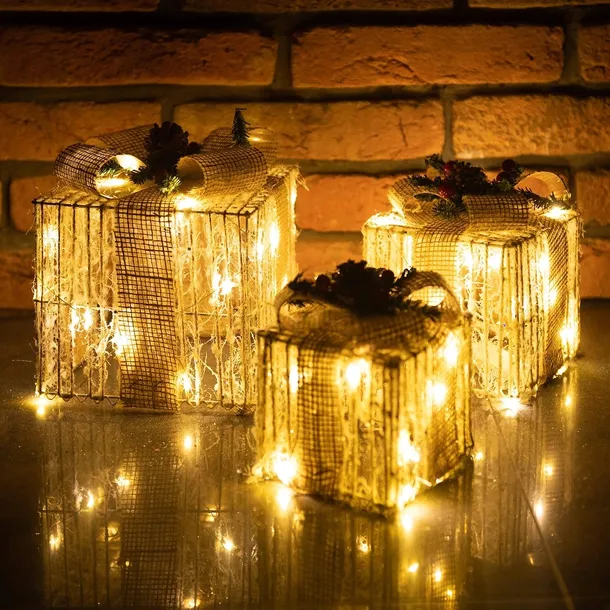 Nie ma co ukrywać, że grudniowe święta kojarzą się z przepięknymi dekoracjami tematycznymi oraz wspaniale mieniącymi się lampkami. A gdyby tak połączyć te dwie ozdoby ze sobą? Wybierz zestaw prezentów, które są oplecione drucikiem z diodami led i stwórz w swoim domu oszałamiającą dekorację, która wygląda świetnie zarówno za dnia jak i po zmroku!
