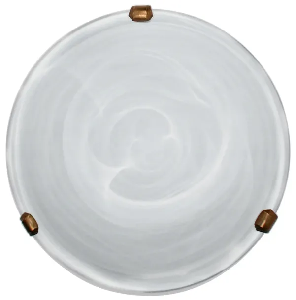 dobrze znany i nieustająco modny alabastrowy klosz w odcieniach bieli, wykonany metodą wirową, dekoracyjne uchwyty w jednym z 3 dostęnych kolorów - tu patyna - umożliwiają unifikację kolorystyczną aranżacji; dostęny w trzech rozmiarach, również w wersji z drewnem