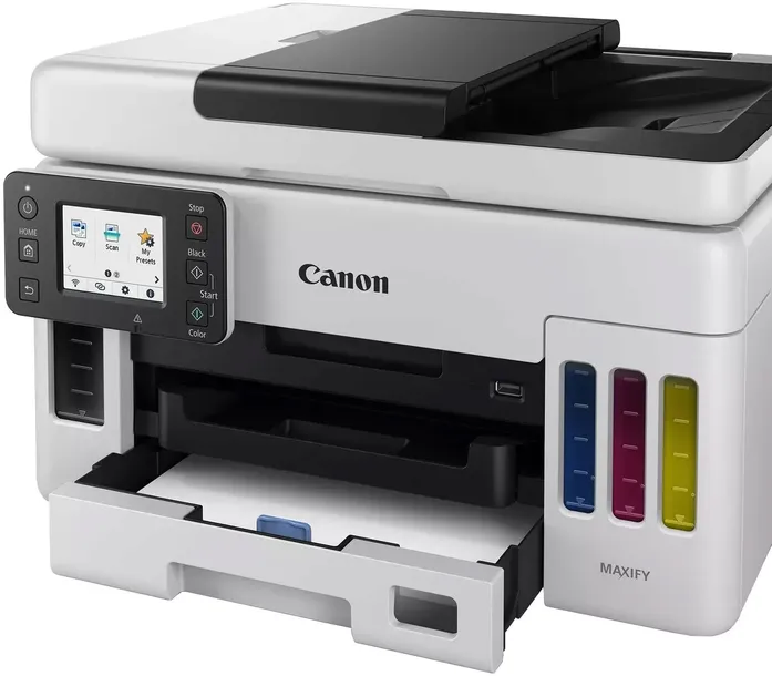 Wszechstronne urządzenie wielofunkcyjne Canon MAXIFY GX6040 pozwoli Ci zaoszczędzić czas i zredukować koszty zarówno w domu, jak i małej firmie. Wysoka ekonomia pracy i energooszczędność idą w parze jakością oraz szybkością zarówno kopiowania, skanowania, jak i wydruku. Co więcej, dzięki pojemnemu podajnikowi papieru jest zawsze gotowa do pracy, a wymiana i serwis eksploatacyjny są bajecznie proste.
