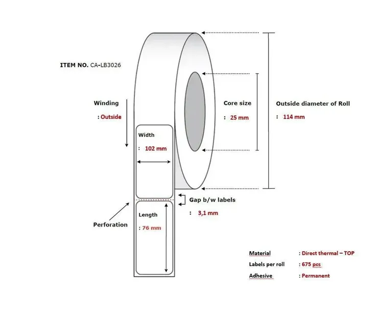 Capture Label 102x76, Core 25, Diam 114 mm. Thermal print. Top coated. Permanent. 675 labels per roll. 16 rolls per box.