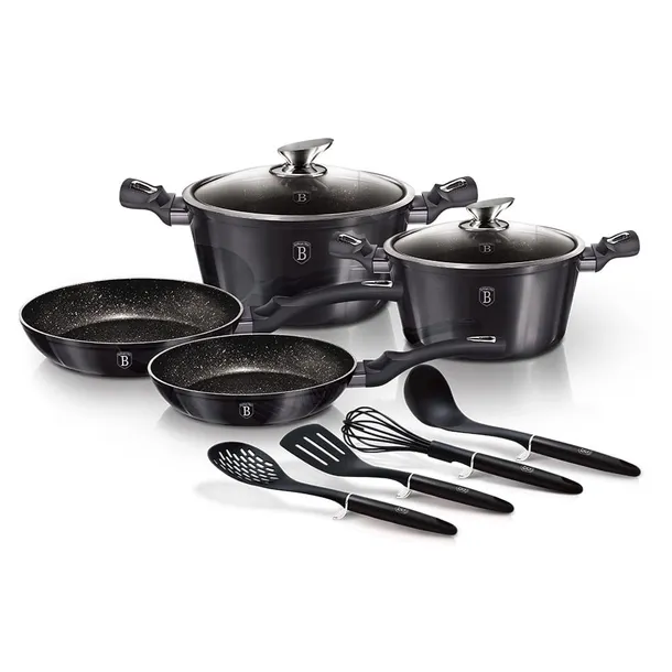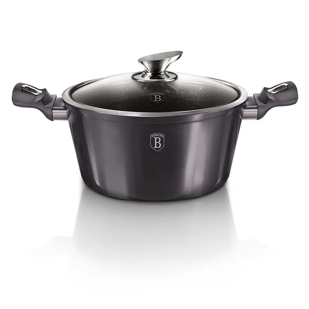 Naczynia z serii CARBON PRO firmy BERLINGER HAUS wykonane są z wysokiej klasy odlewanego aluminium pokrytego wewnątrz potrójną powłoką granitową (marble) o bardzo wysokim współczynniku twardości. Powłoka zewnętrzna w kolorze metalicznym grafitowym. Te atrakcyjne i modne naczynia wyposażone są standardowo w uchwyty typu SOFT TOUCH (silikon handle). Przystosowane do wszystkich rodzajów kuchenek: gazowa, elektryczna, ceramiczna, halogenowa, indukcyjna. System TURBO INDUCTION (bardzo szybko nagrzewają się) pozwala zaoszczędzić nawet 35% energii.