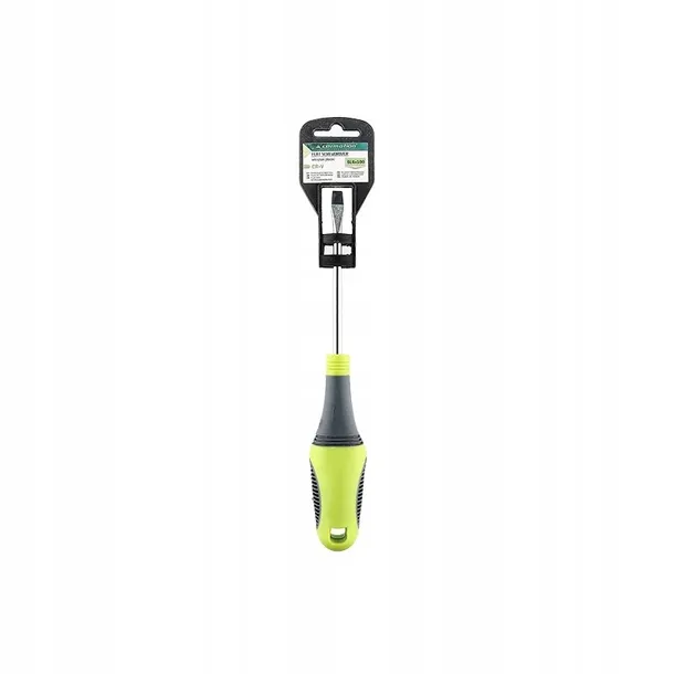 Wkrętak płaski przydatny przy pracach mechanicznych oraz podczas majsterkowania. Grot wykonany z wytrzymałej stali chromowo-wanadowej, zapewniającej długą żywotność narzędzia. Magnetyczna końcówka pokryta została czarnym chromem. Ergonomiczny uchwyt z tworzywa sztucznego zapewnia bezpieczeństwo i komfort podczas pracy.