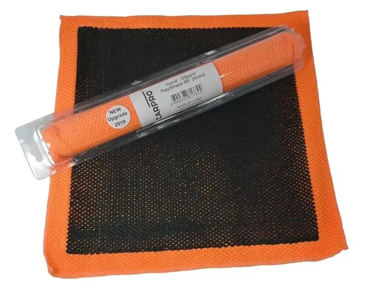 CarPro Polyshave Microfiber - to specjalny ręcznik pokryty powłoką działającą na identycznej zasadzie jak glinka do lakieru, dlatego też idealnie sprawdza się podczas procesu dekontaminacji lakieru. Bardzo łatwa w użyciu. Wystarczy użyć lubrykantu (np. woda z szamponem), aby ręcznik miał poślizg i mógł zbierać wszelkie osady pozostawiając gładką powierzchnię.