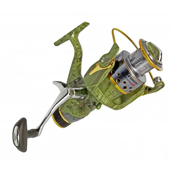 Perfekcyjnie wykonany kołowrotek z wolnym biegiem szpuli o oryginalnym, maskującym designie. Ośmiołożyskowy mechanizm zawierający łożysko oporowe oraz wzmocnione przekładnie kołowrotka doskonale sprawdzają się podczas holu nawet rekordowych okazów ryb. Precyzyjny, wielotarczowy hamulec idealnie sprawdza się podczas walki z rybą. Krawędź spływu szpuli oraz rurkowy kabłąk utwardzone azotkiem tytanu.Kod Wielkość Waga (g) Pojemność szpuli mm/m Dodatkowa szpula Przełożenie Liczba łożysk 6368 40 395 0,30/190 grafitowa 5.2:1 7+1