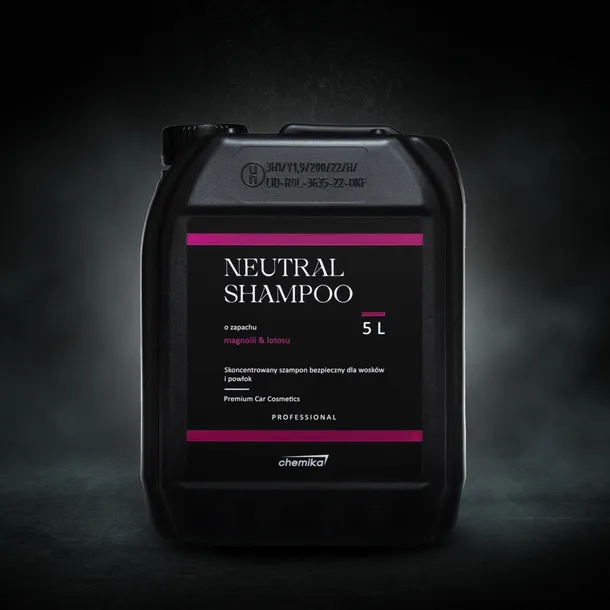 CHEMIKA Neutral Shampoo w wersji pięciolitrowej to skoncentrowany szampon do mycia samochodu o doskonałych właściwościach myjących, posiada przyjemny kwiatowy zapach.