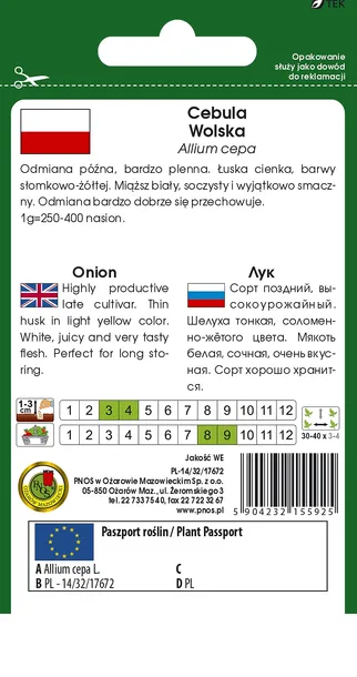 Cebula Wolska jest odmianą późną, jej okres wegetacji wynosi 140-150 dni. Cebula ta jest bardzo plenna, charakteryzuje się też dużą trwałością w przechowaniu. Tworzy kulisto-romboidalne cebule, wyrównane w kształcie, okryte słomkowożółtą cienką łuską. Osiągają masę 120-160g. Miąższ biały, smaczny. Duży udział plonu handlowego w plonie ogólnym. Odmiana polecana do bezpośredniego spożycia, przetwórstwa i przechowywania.