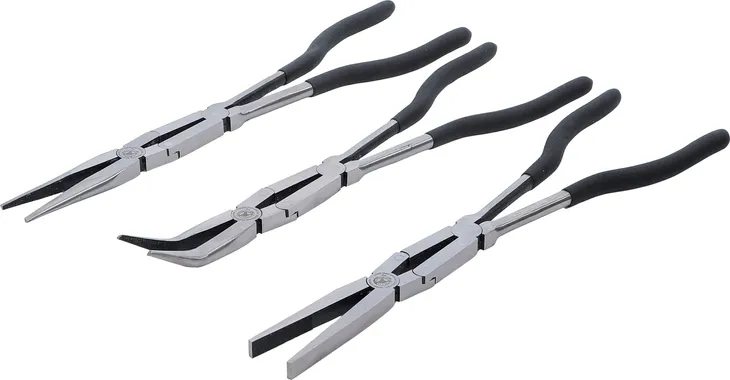 - podwójny przegub umożliwia duże otwarcie szczęk przymałym otwarciu uchwytu- szczególnie odpowiednie do prac w ciasnych przestrzeniach- powlekane zanurzeniowo uchwyty, czarne- w pokrowcuZawartość zestawu:- szczypce długie, proste, długość 340 mm- szczypce długie, lekko zakrzywione, długość 335 mm- szczypce płaskie, proste, długość 340 mm Zestaw szczypiec dwuprzegubowych3 szt.
