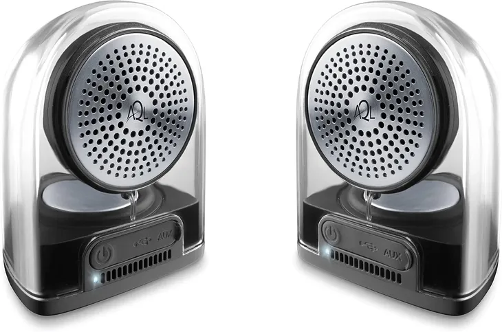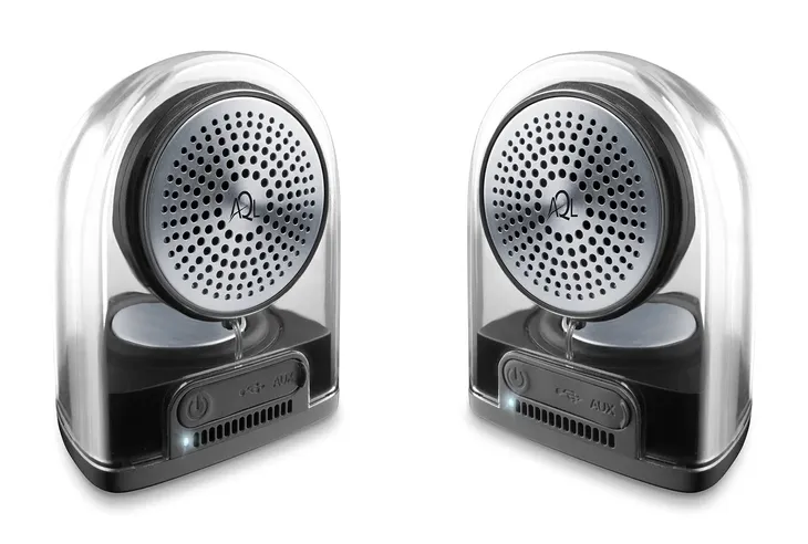 AQL Concerto Stereo bezprzewodowy przenośny głośnik Dzięki technologii Bluetooth Stereo i podwójnemu głośnikowi koncert może stworzyć wciągającą atmosferę z czystym i zdefiniowanym dźwiękiem, uczucie otoczenia muzyką, można go używać zarówno w trybie kompaktowym, dzięki magnetycznej podstawce, osobno w różnych miejscach. Ponadto przejrzysta konstrukcja głośnika i sztywny futerał podróżny sprawiają, że jest to idealny produkt dla tych, którzy kochają design i przenośność.