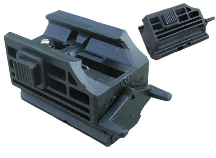 Montaż jest bardzo łatwy, wystarczy wsunąć celownik na szynę i zwolnić zatrzask ustalający mocowanie. Celownik ma pełną regulację w płaszczyźnie pionowej i poziomej. Można również podłączyć wybrane latarki taktyczne pasujące do tej szyny.