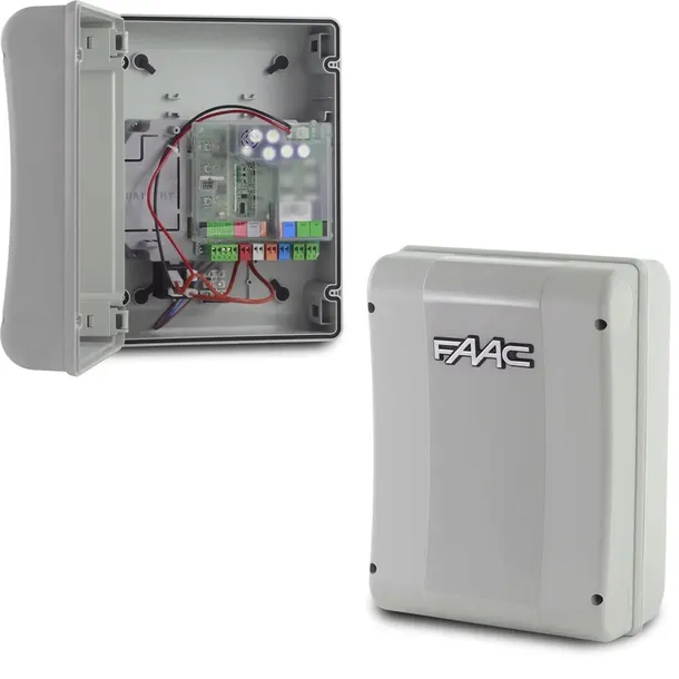 Centrala sterująca E024S do napędów bram skrzydłowych Faac w komplecie z obudową i transformatorem. Obsługuje wszystkie siłowniki 24V, dedykowana do napędów S418, 391.