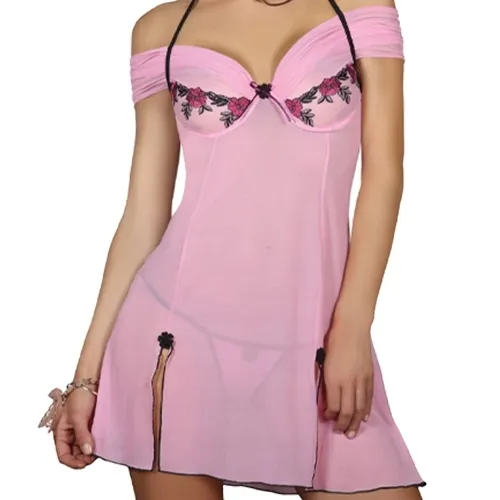 Chameli to koszulka subtelna, lekka i pełna kobiecego wdzięku. Modny kolor pudrowego różu w ciekawy sposób połączony został z kwiatowymi aplikacjami na miseczkach. W tym bardzo oryginalnym zestawie pięknie wyeksponowany został dekolt. Cieniutkie ramiączka zestawione z drapowaniami ładnie uwypuklają ramiona. Symetryczne, zmysłowe rozcięcia z przodu podkreślają talię. Chameli sprawi, że każda miłośniczka pudrowego różu, elegancji oraz subtelności poczuje się atrakcyjnie i kobieco.