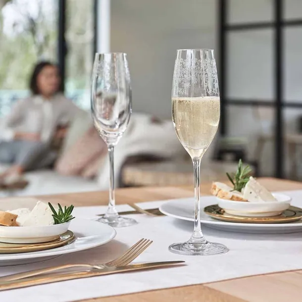 Seria CHATEAU gwarantuję chwilę wytchnienia po ciężkim dniu! Kieliszek do szampana został wykonany z wysokiej jakości szkła Teqton. Szkło to charakteryzuje się przede wszystkim wyższą odpornością na uderzenia i stabilnością, większa twardość powierzchni zapewnia odporność na wszelkie zarysowania. Teqton gwarantuję trwały blask i przejrzystość. Cienkie i delikatne wzory na kieliszku nadają mu elegancji i szlachetności. Serię CHATEAU można myć w zmywarce i dlatego też jest idealna do codziennego użytku.