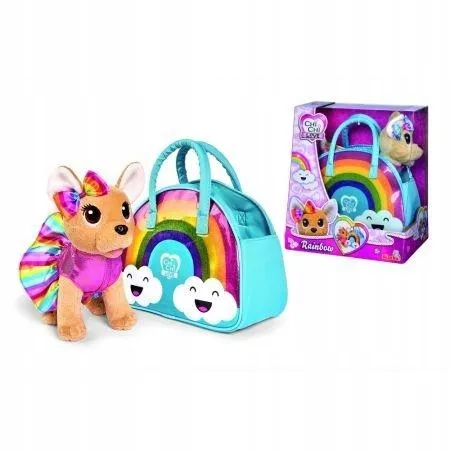 ✔️ Chi Chi Love Tęczowa moda to uroczy piesek - przytulaczek z supermodnymi dodatkami. Wykonany został z delikatnego, bardzo miłego w dotyku pluszu. W zestawie z uroczym Chihuahua znajduje się specjalna torebka, w której piesek będzie fantastycznie czuł się podczas spacerów. Torebka jest lakierowana w kolorach tęczy. Na szczególną uwagę zasługuje jednak niezwykła kreacja Chihuahua - śliczna sukienka z połyskującą różową górą i kolorowym dołem oraz kokarda przy uchu, która idealnie pasuje do reszty stroju. Taki piesek to prawdziwy przyjaciel dziewczynki i nieodzowny towarzysz!