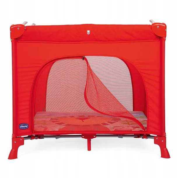 - Otwierane okienko - zamek błyskawiczny wszyty w jedną ze ścianek kojca można rozsunąć, aby dziecko mogło wyjść i poczuć się bardziej samodzielne.