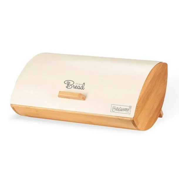 Elegancki i funkcjonalny chlebak Maestro MR-1775-IVORY to świetny wybór do każdej kuchni, łączący styl i funkcjonalność. Wykonany z trwałej stali nierdzewnej oraz bambusa, stanowi stylowy dodatek do wnętrza, który zapewnia jednocześnie długotrwałą ochronę pieczywa.
