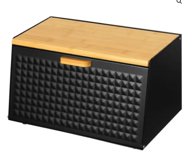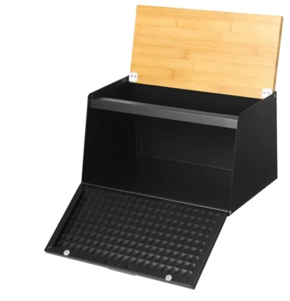 - Chlebak stalowy w kolorze czarnym z drewnianą pokrywą
