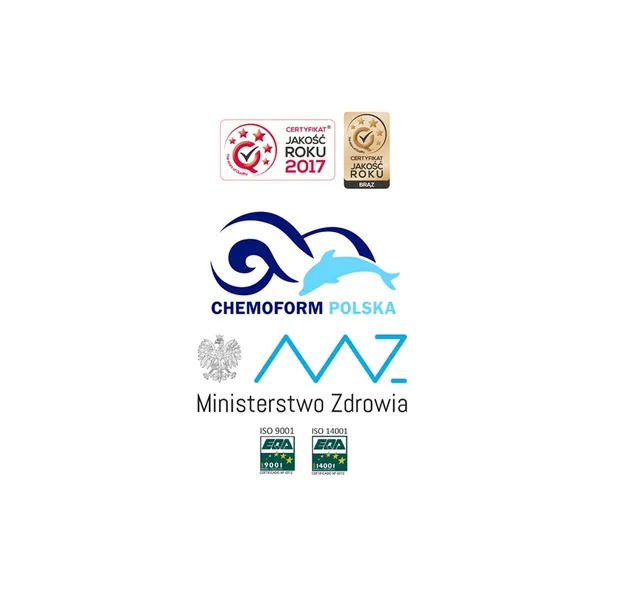 Wszystkie preparaty chemiczne firmy CHEMOFORM AG zawierające substancje biobójcze (preparaty przeciw glonom, bakteriom i grzybom) posiadają, zgodnie z art. 26 ustawy z dnia 13 września 2002 (Dz.U. nr 175 poz. 1433 ze zmianami) pozwolenia na obrót produktami biobójczymi na rynku polskim wydane przez Ministra Zdrowia oraz atest P.Z.H.