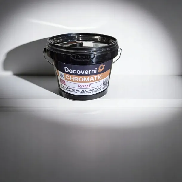 CHROMATIC RAME to dekoracyjna masa malarska o efekcie miedzi – łączy w sobie połysk metalu i głębię pigmentów mineralnych. Po wyschnięciu powierzchnia zyskuje naturalny, ciepły odcień przypominający ręcznie patynowaną miedź. Doskonale prezentuje się w świetle bocznym i dekoracyjnym.