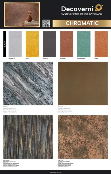 - Idealne do łączenia z efektami Concrete Fini, Concrete Grosso oraz kolorami CHROMATIC (Oro, Verderame, Argento).