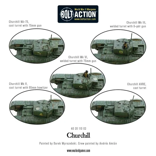 Przyjmując formę bardzo przypominającą wcześniejsze czołgi z I wojny światowej, silniki Vauxhalla zbudowane Churchill były podstawą wielu wariantów od MkI z działem dwufuntowym do dział MkVII 75 mm. Inne wersje zawierałyby więcej specjalistycznego sprzętu inżynieryjnego, w tym sprzęt mostowy i urządzenia trałujące miny – oraz ulubioną opcję „bliskiego wsparcia” dla haubicy 95 mm!