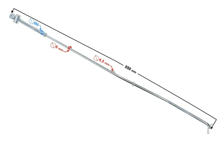 Cięgno o długości całkowitej 550 mm i średnicy 6 mm zostało zaprojektowane z myślą o najwyższej funkcjonalności i efektywności hamowania. Kompatybilne z modelami Barton FR2, zapewnia doskonałe dopasowanie i łatwość instalacji. W zestawie znajdują się niezbędne elementy montażowe, takie jak tulejka, sprężynka i nakrętka, gwarantujące kompletny montaż i optymalną wydajność. Wybierając Moretti Parts, wybierasz pewność i satysfakcję.