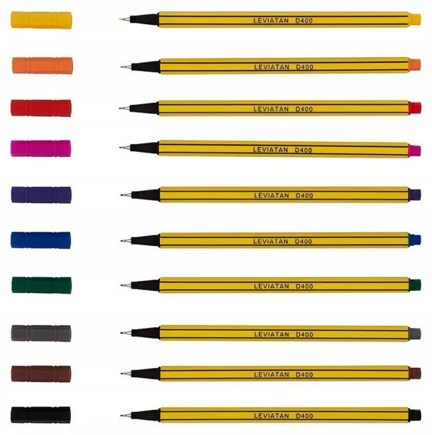 Wyróżniający się kolorystyką obudowy oraz długością linii pisania cienkopis dostępny w 4 podstawowych kolorach lub w zestawach kolorów. Wewnętrzny wkład tuszujący o długości 12,5 cm. Posiada wentylowaną skuwkę w kolorze tuszu. Kolorystyka obudowy umożliwia łatwe odnajdywanie cienkopisu wśród innych akcesoriów biurowych.- fibrowa końcówka oprawiona w metal- wentylowana skuwka- linia pisania: 0,4 mm- 10 kolorów