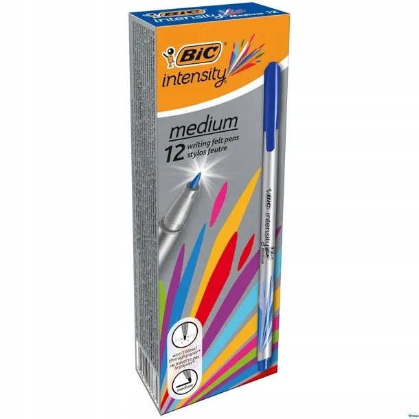 CIENKOPIS INTENSITY MEDIUM BIC BLUE - cienkopis z tuszem na bazie wody - idealny do pisania, rysowania i szkicowania - nie przesiąka przez większość papierów - Klips na skuwce zapobiega jej toczeniu się - odporny na rozmazywanie po wyschnięciu - dekoracyjny wzór obudowy - Średnica końcówki 0,8 mm zapewnia szerokość linii pisania 0,7 mm - kolor: niebieski. Cena za sztukę. EAN: 3086123514867