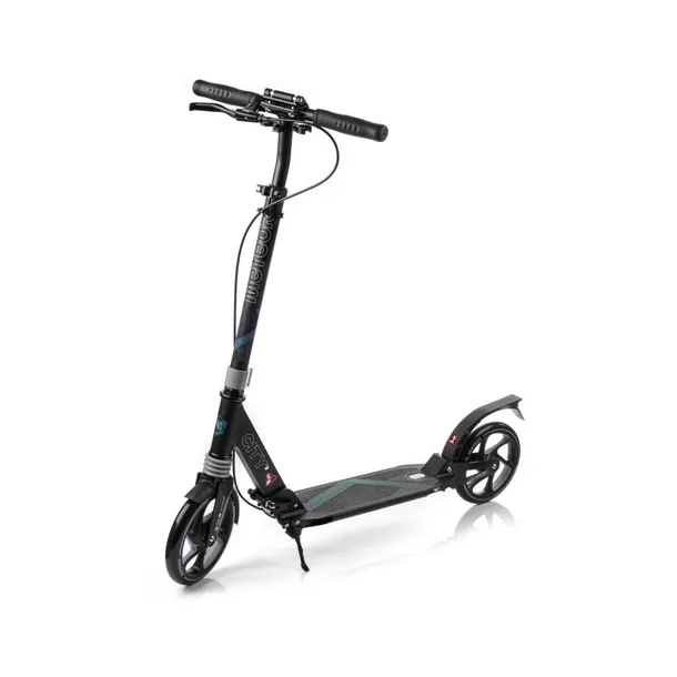 Kierownica wyposażona jest w gumowe rączki, zapewniające pewność uchwytu a 3-stopniowa regulacja wysokości pozwoli idealnie dopasować pojazd nawet bardzo wysokim osobom. Dodatkowo kierownica została wyposażona w aluminiowy zacisk, który zapewnia jeszcze lepsze mocowanie i gwarantuje stabilność. Duży, niski podest ułatwia zachowanie równowagi, dzięki czemu również początkujący użytkownicy poczują się pewniej.