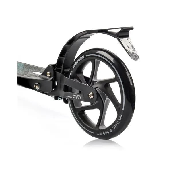 Dodatkowo pojazd został wyposażony w błotniki chroniące przed ochlapaniem, jeśli zaskoczy Cię deszcz a tylny posłuży jednocześnie za hamulec.