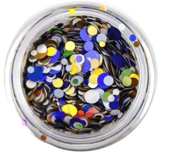 Confetti to drobne okrągłe elementy mieniące się różnymi kolorami.