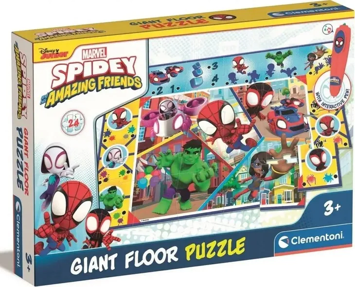 Clementoni 16735 Marvel Spiderman Giant Floor Electronic Educational Game with Interactive Pen, Jigsaw Puzzle Children Age 3, Learning Toys-Made in Italy